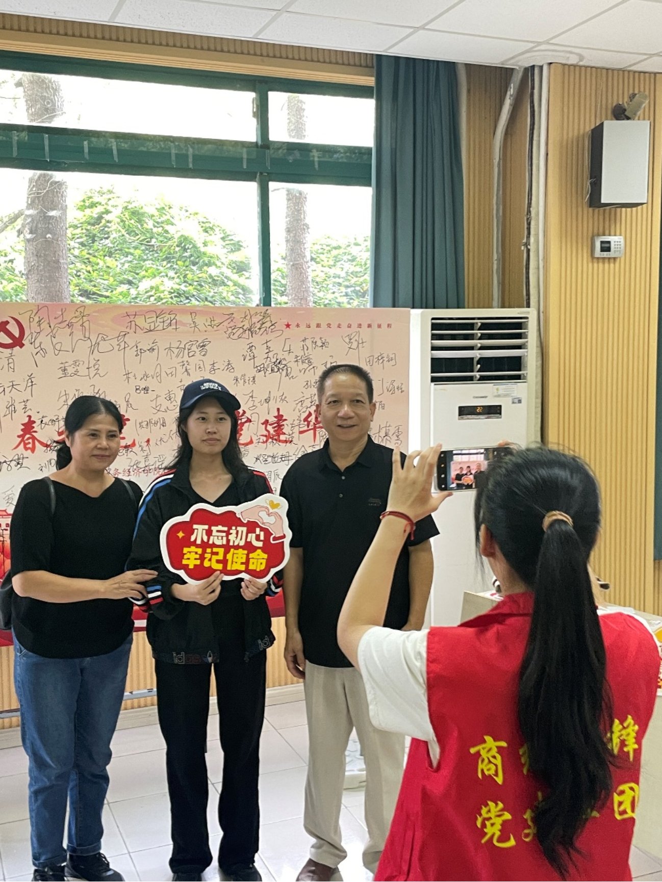 活动现场,新生们纷纷在签名板上写下自己的姓名,一笔一划间满是对大学生活的期待;学生党员则主动为新生与家长拍摄合影,为新生留存下校园生活的首个珍贵记忆。从签名板上密密麻麻的名字,到照片里一张张灿烂的笑脸,活动细节处处彰显着支部对新生的用心与关怀。