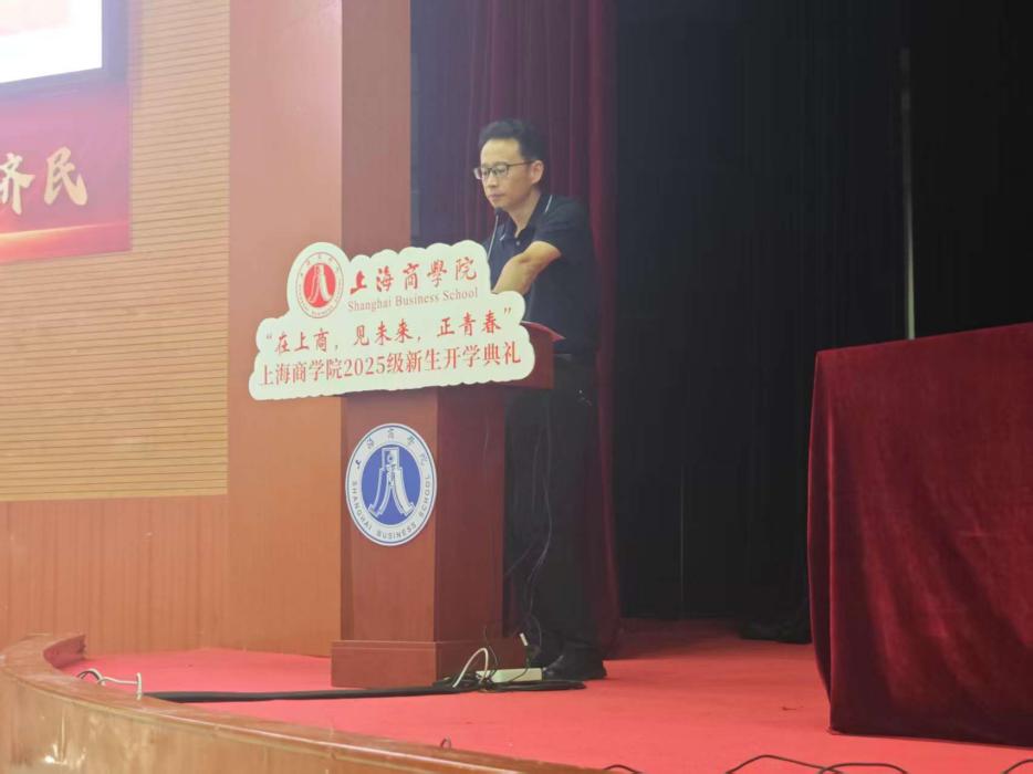 学院院长李志刚发表了热情洋溢的讲话。他首先代表学院全体师生,向2025级新生的到来表示热烈的欢迎和衷心地祝贺。院长要求同学们在大学期间,沉心读书,“破壁”学习;勇于实践,知行合一;拓展人脉,结交诤友;强健体魄,阳光心理。同时,院长还介绍了学院的发展历程、师资力量、教学设施及科研成果。学院坚持党建领航,科研反哺教学,构建实践教学体系,推动教学数字化,拓展国际化教育,强化质量保障,营造“九守文化”氛围,致力于培养具有国际化视野的应用型商务与金融人才。在院长的详细阐述下,新生们对学院和专业有了更加全面和深入的了解,也深刻认识到即将到来的教育教学审核评估工作的重要性。