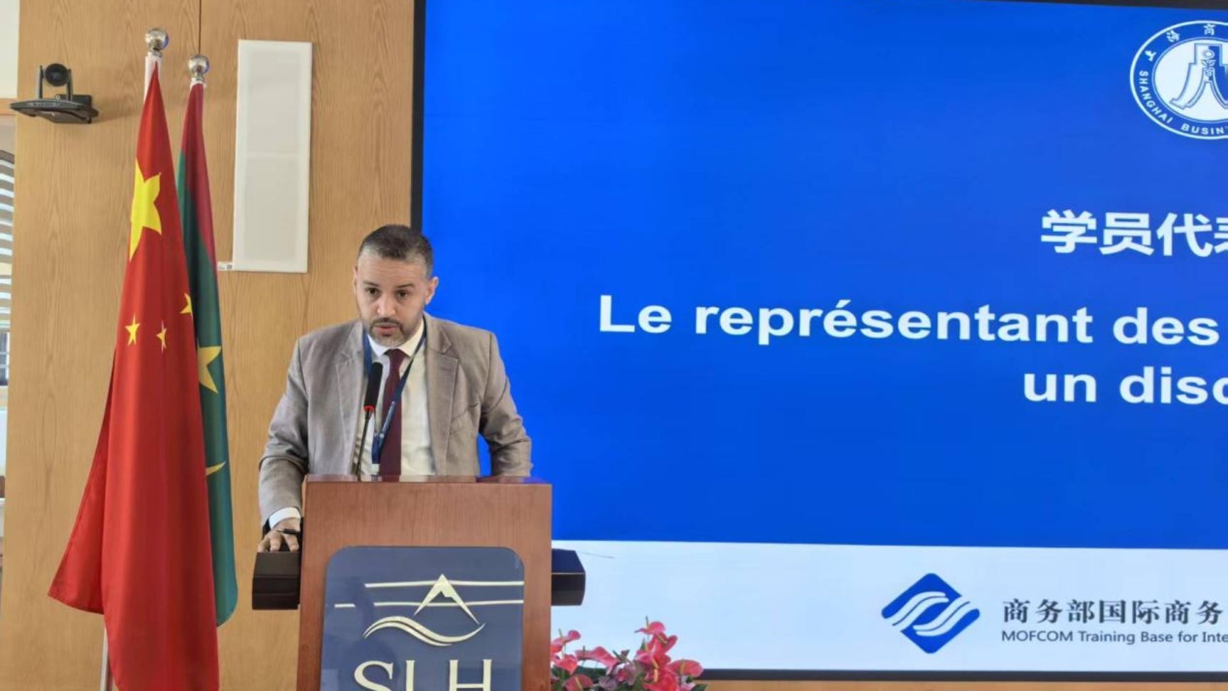 学员代表,毛里塔尼亚经济与财政部保险监控司财务控制处处长穆罕默德首先对中国商务部及上海商学院表示了感谢。他表示,中国在数字经济领域处于国际领先地位,此次研修班将为毛里塔尼亚提升数字经济领域能力与知识水平提供宝贵契机,并将进一步深化毛中两国友谊与合作纽带。他热切期待能与中方专家分享经验、相互学习。