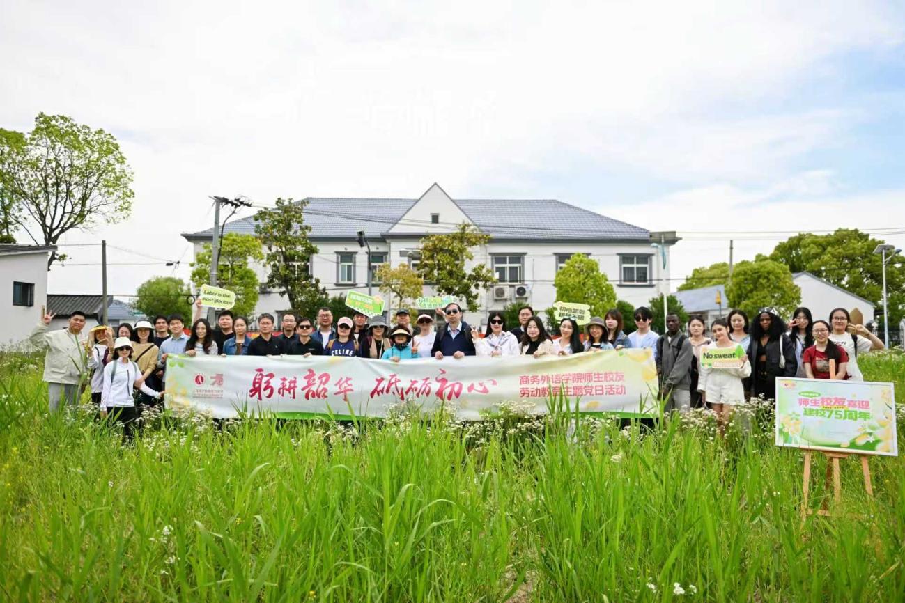 图为师生党员、校友及留学生代表赴全国文明村浦东新区牌楼村开展劳动教育乡村研学