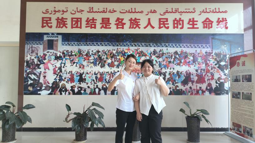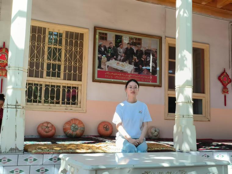 毕业之际,她心怀家国,毅然放弃留沪机会,通过新疆专招项目奔赴喀什地区英吉沙县英也尔乡。她将园林专业培养的系统规划与生态统筹思维创造性运用于基层工作。在农业办期间,深入田间地头,面对边疆艰苦的工作环境,她以“胡杨精神”扎根坚守,在服务群众的实践中完成了从“受助者”到“奉献者”的蜕变。她常说:“是国家的资助政策帮助我完成学业,现在是我回报社会的时候了。”这种感恩反哺的情怀,支撑她在边疆扎下根、沉下心、干实事。她的专业能力与奉献精神,不仅推动了当地乡村建设,更成为连接沪疆两地的情感纽带。