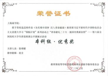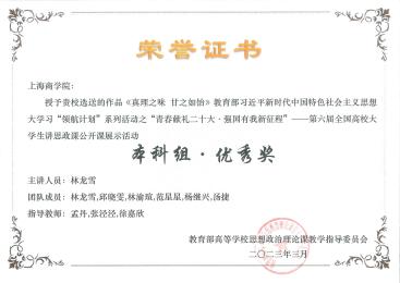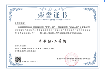 图7. “青春献礼二十大·强国有我新征程”--第六届全国高校大学生讲思政公开课比赛优秀奖1 |